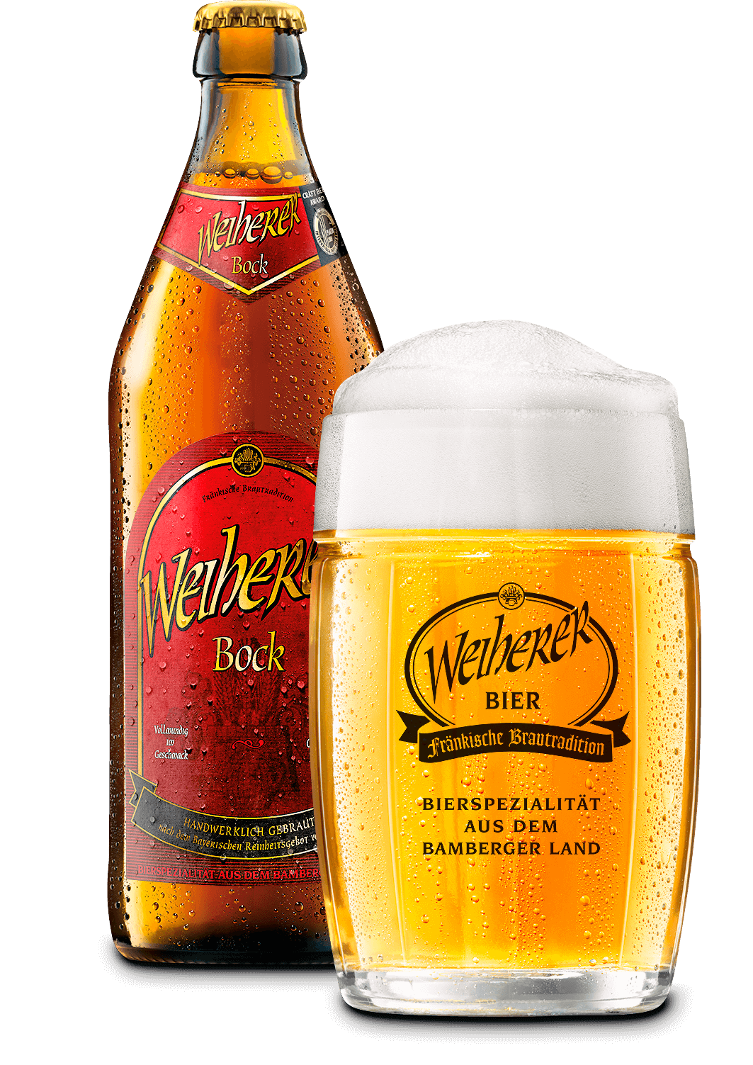 The Weiherer Bock pours a beautiful golden yellow color. The scent is strong and malty with some notes of honey. This impression is carried through to the first taste. The dominating flavor is the sweetness of the malt, though the honey notes are clearly noticeable - a full body with Weiherer charm. A good portion of hops adds the final touch to the full-bodied bock beer that has already impressed the European Beer Star judges four times with its slightly warming effect.